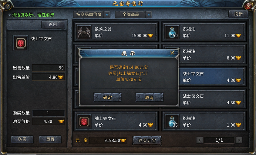 注:“元宝寄售行”中不支持传奇永恒专用元宝交易,传奇永恒专用元宝可用于游戏内商城道具、玛法特权、每周特惠礼包购买消耗。