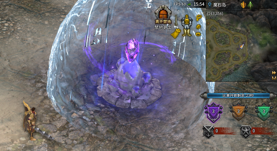 2)进入比赛地图:魔石岛后,将有30秒倒计时。倒计时结束前,所有玩家无法走出各自阵营的祭坛,靠近时会被弹回。
