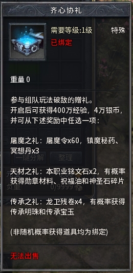 | 40+ | 400万经验、4万银币、1个自选礼包 |