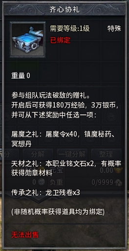 | 20~29 | 180万经验、3万银币、1个自选礼包 |