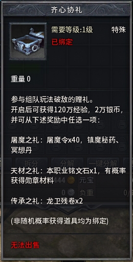 | 1~19 | 120万经验、2万银币、1个自选礼包 |